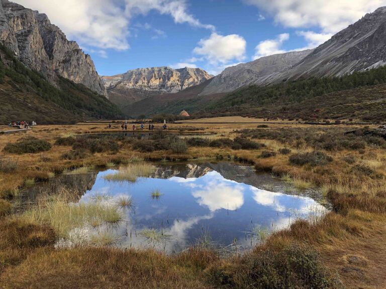秋天去稲城亚丁是很合适的。此时植物的颜色变成黄色和红色,非常养眼。气候也不冷不热,适合旅游。