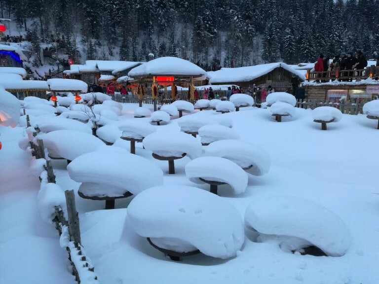 雪乡属于稀缺资源。虽然是由于贝加湖的寒湿气流与日本海的暖湿气流交汇雪期长达7个月,但要想看到雪乡最美的景致只有每年的12月初到第二年的2月底。食宿费用高是肯定的。图三显示的是2017年12月平安夜晚上在雪乡的人。当天发的微博瞬间阅读量十几万。可见人们的关注度。雪乡的雪粘性大,覆盖在房顶上像个大棉被。雪檐伸出房檐1米多也不会掉下来了,令人啧啧称奇。在雪乡玩耍的时候碰到陌生人都觉得很有趣。都觉得这里的雪很神奇。这么多人去雪乡玩,客栈只有一百多家,能有地方住就不错了。出现个把负面新闻也很正常。傍晚在街里走的时候还有拖着行李箱问我们住的地方还能加人吗?店员都住在走廊过道呢。不过现在整顿了,秩序应该是最好的。建议大家找个靠谱的旅行社就不会出现加价的情况了。而且住一晚足够了。没必要定2晚。晚饭前后街里人最多。快9点的时候人就少了。抓紧时间拍一些无人的好照片赶紧回屋暖和暖和。雪乡周边的雪谷十里画廊、凤凰山大峡谷和空中花园,也都能展现千姿百态的雪景。我是经人推荐找的雪城户外俱乐部,口碑一向很好。玩一趟下来跟领队孙老师和导游小赵都成了好朋友。以后再去黑龙江旅游还找他们。