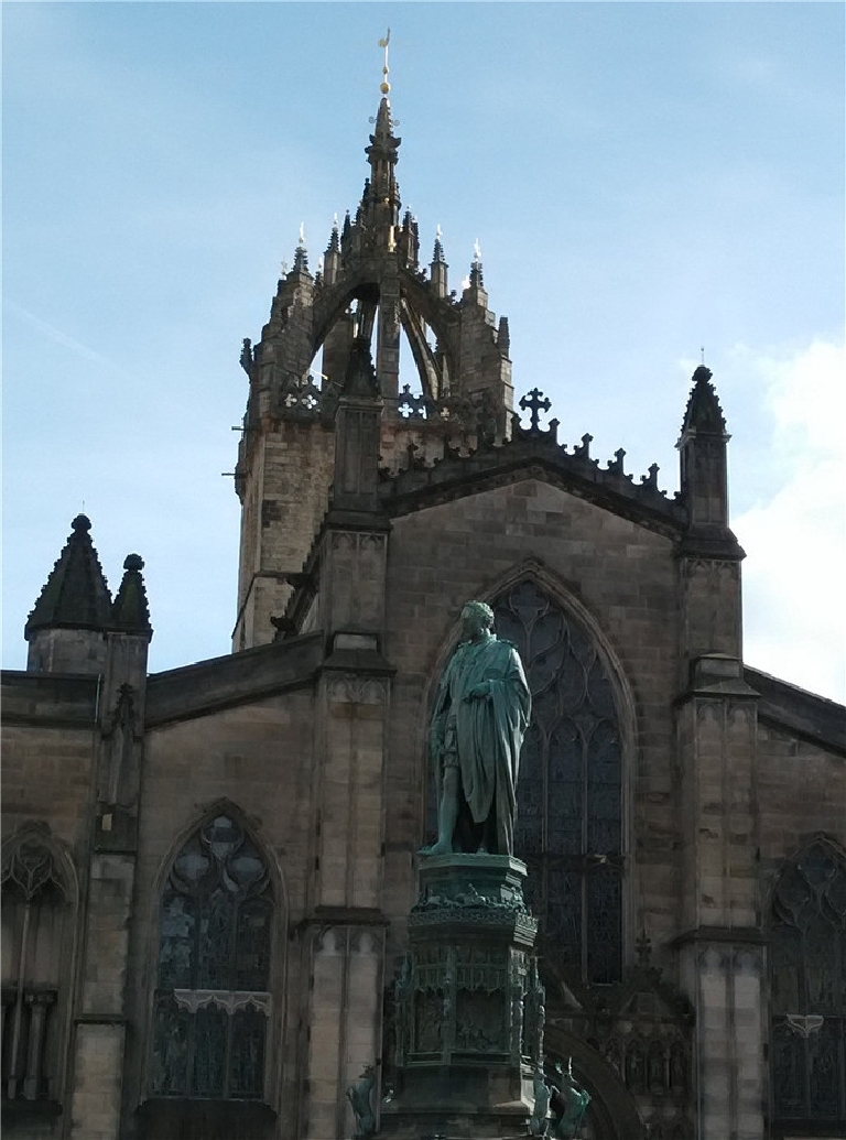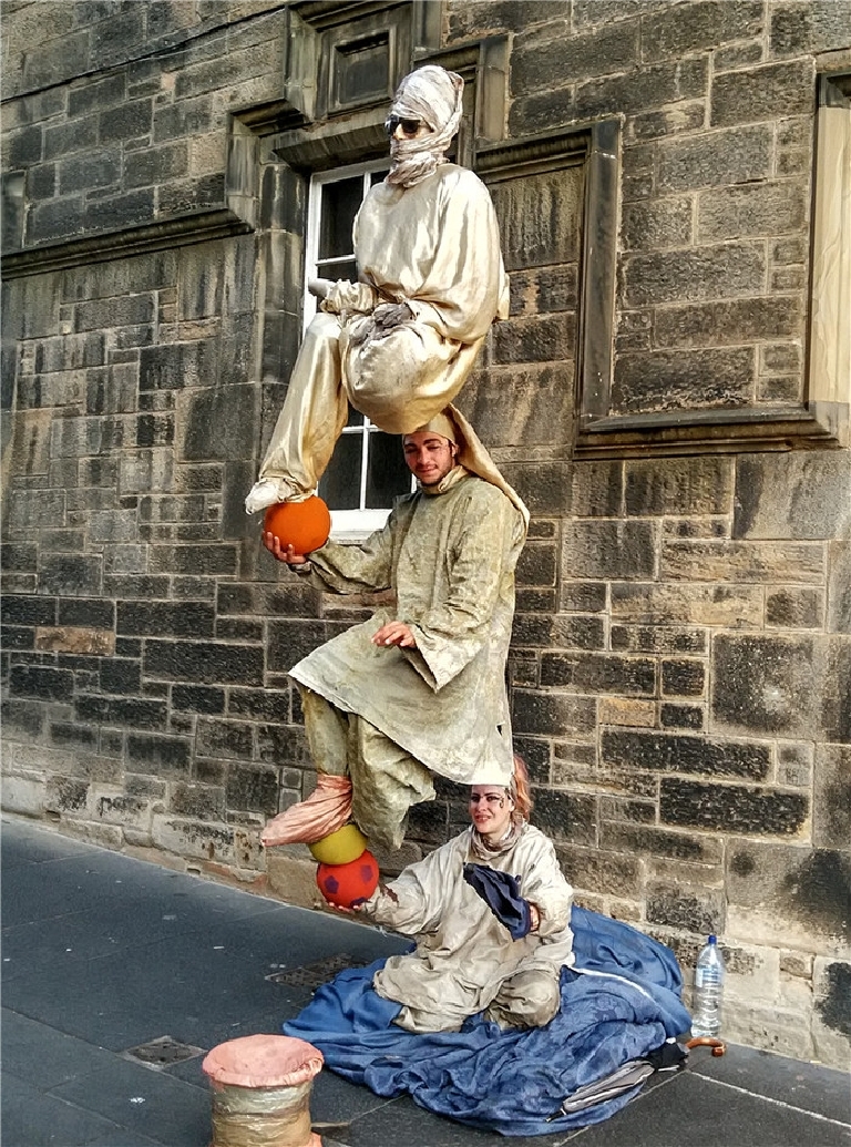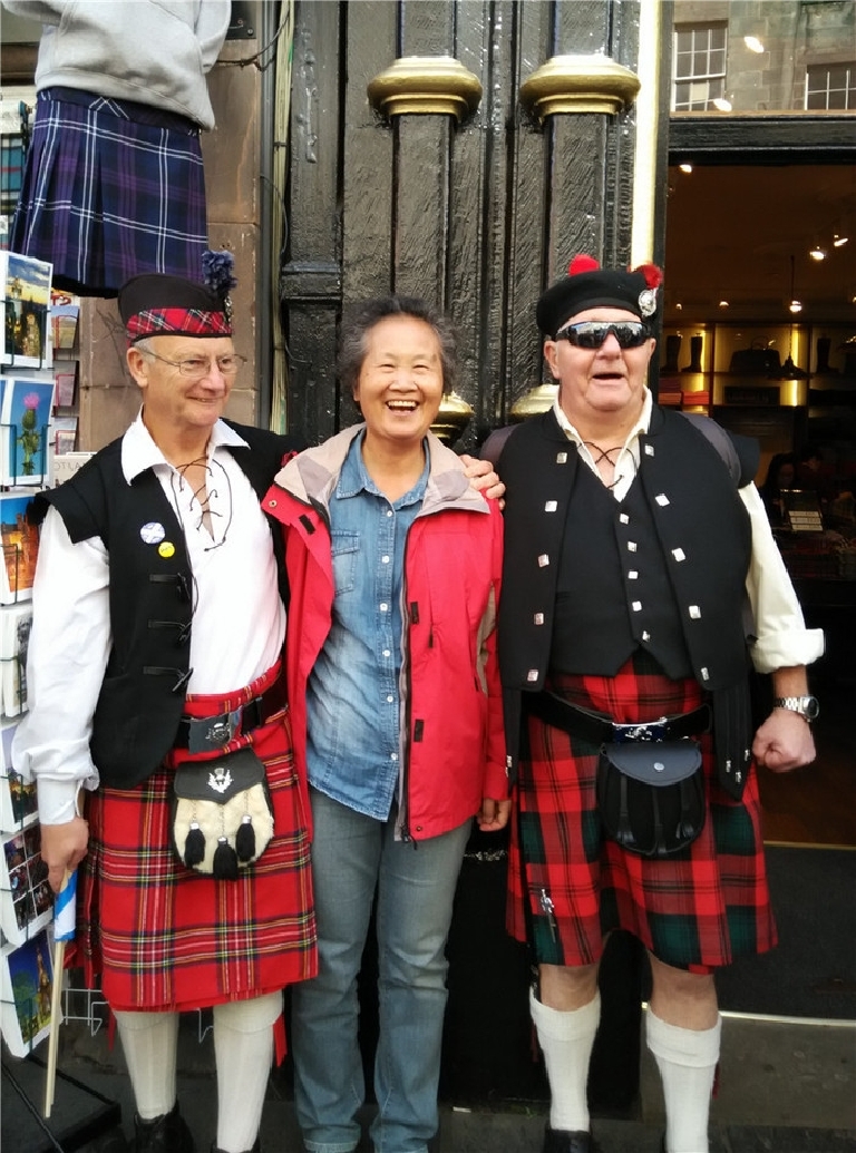 爱丁堡是苏格兰首府,英国著名的文化古城。我们只在爱丁堡古堡外照了像,主要是逛一英里大道。皇家一英里大道两旁小巷交错,石头铺成的地面早被磨得发亮,大道两边古老建筑古朴雄壮。漫步其中,宛如阅读苏格兰的古老历史。一英里大道上商店多,游客也多,熙熙攘攘,很热闹。谁不想买到正宗的苏格兰纯羊毛围巾,和品尝各种口味的威士忌呢!街道上有演奏风笛、魔术和行为艺术表演,使你仿佛穿越了时空,也分不清哪个是塑像哪个是艺术家了。