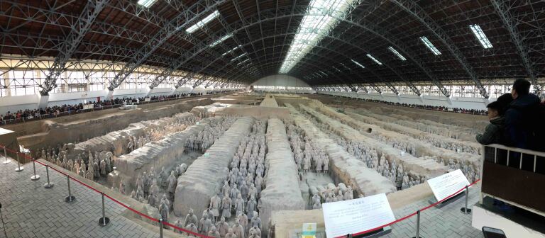 #可以选择分别报两个一日游去东线兵马俑和华清池。看兵马俑需要体力,全程步行5公里吧,一号坑里面的人是兵马俑数量的之前10倍。就是这时候去看不了《长恨歌》表演了。不过有可能去了兵马俑晚上导游会推荐去看一个表演,在离城墙很近的一个剧院了,个人感觉不错,可以推荐去看看。