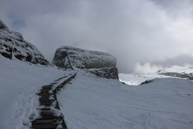 3.轿子雪山(强烈推荐)门票54,保险20,。轿子雪山是昆明的最高峰,也是离昆明最近的一座可攀登到顶峰的雪山,最高海拔4247,可攀登的顶峰好吧高度为4223,是云南省省级风景名胜区,也是国家自然保护区,可以乘坐索道到达山腰开始徒步攀登,轿子雪山的雪是积雪,有时候气温低的时候,半夜可能会下雪,第二天白茫茫一片,从昆明北部汽车客运站出发,两个小时的车程就可以到达离轿子雪山最近的村镇-转龙镇,去轿子雪山的人几乎都要在镇上过度一晚上,第二天早点出发再去雪山。因为轿子雪山在外的知名度还不算高,所以很多外地游客都不知道原来昆明都有一座雪山,是个好去处,消费不高,又挺好玩。祝玩的开心。