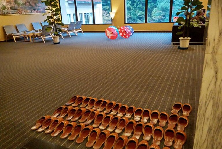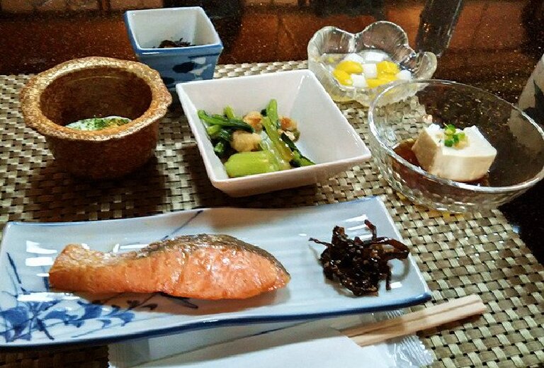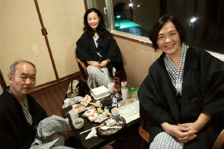 在日本这个“三步一小汤、五步一大汤”的国度,没有什么事能比泡温泉更逍遥的了。我们离开名古屋后大巴下了高速转进山路,天色渐暗,下起了雨,这里已是三重县的山区。换上温泉旅馆来接我们的中巴,我们来到颇有日本特色的“河鹿庄”。换好衣服,马上去“泡汤”。只泡了短短十几分钟,就驱散了阴雨天的湿冷,消除了旅途的疲惫和倦怠。