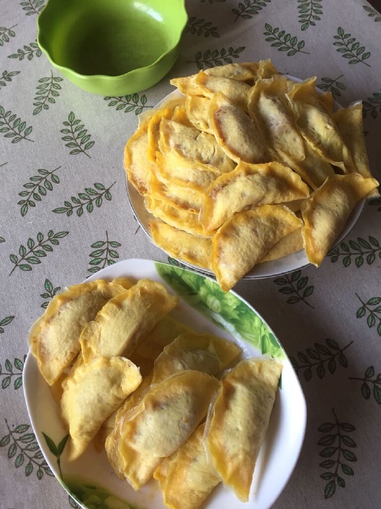 今天一天忙的就是包水饺、包蛋饺,已进入过年模式。买了一斤荠菜(可能北方没这样的莱,荠菜是一种野菜,而荠菜饺子是南方人普遍喜欢吃的)四斤绞肉,二斤用来做水饺,二斤用来做鸡蛋饺。下面分享一下我的过程:水饺馅:将二斤绞肉中打上三个鸡蛋,放一些盐、味精、酱油均匀搅拌,将荠菜用开水烫一下捞出(不要将水挤掉),然后挆碎倒入绞肉中加少许盐一起拌匀,最后稍微放一点麻油即成,一般饺子皮是买现成的(一是没北方人那么麻利,二是来的快省事)这样就可以快速包好了,放入冰箱冷冻时下面要垫一下保鲜膜,以防粘底,放满后上面也要盖上一层保鲜膜,以防饺皮裂开。今天除了包了水饺,还用饺面包了一点汤包,很是不错。下午还完成了六十个鸡蛋饺,可谓春节饭桌上的金元宝了。今天可是收获多多!