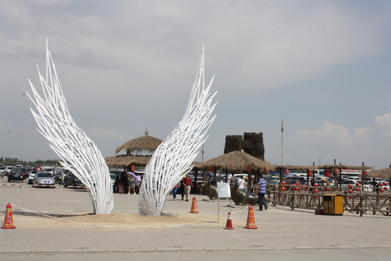随风飘荡的图腾旗子,以及不注意的一口沙,让你咒骂着35度高紫外线的天气
