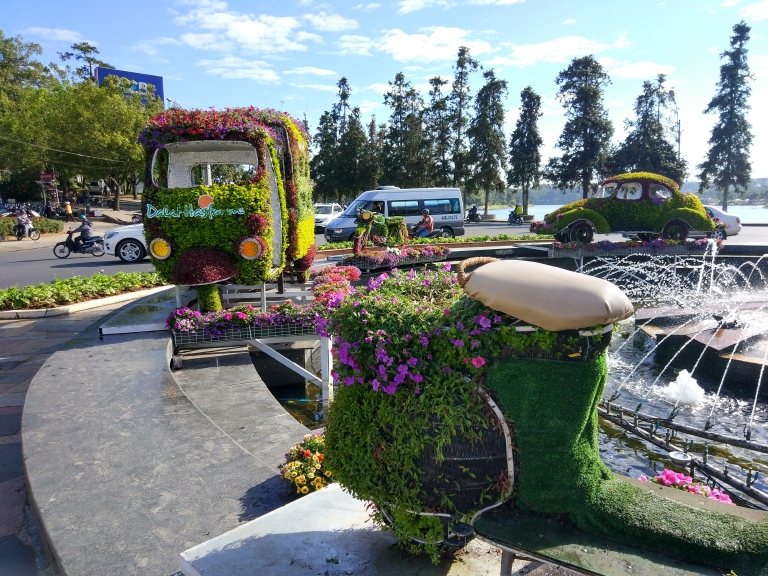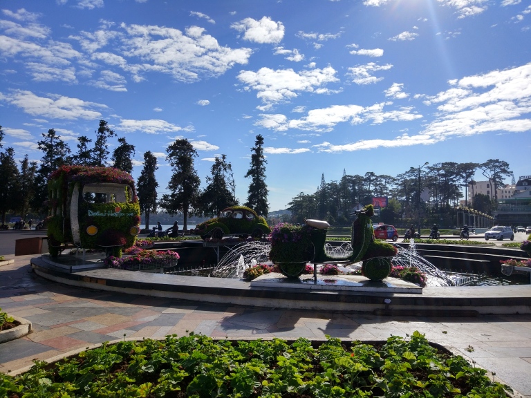 越南的大叻不是一个很有名的城市,很多人路过会略过,但是略过大叻真的会很可惜。大叻是一个花园型的城市。没有一处角落没有花儿的。因此被称为越南私藏的法国。走在中心市场中心花园每一处的花儿点缀着那里。尤其就是最美的中心市场的中心花园中间的环形,。有的摩托车汽车点缀着花儿,。这个城市充满着朝气,晚间还有些慵懒的气息,。在这个城市有走着也会忘记,这是一个城市,而是动漫里的场景随处一拍背后像动漫版的云朵,慢慢的飘过,然后下面是整个城市洋溢在花儿的海洋中。大叻疯房子