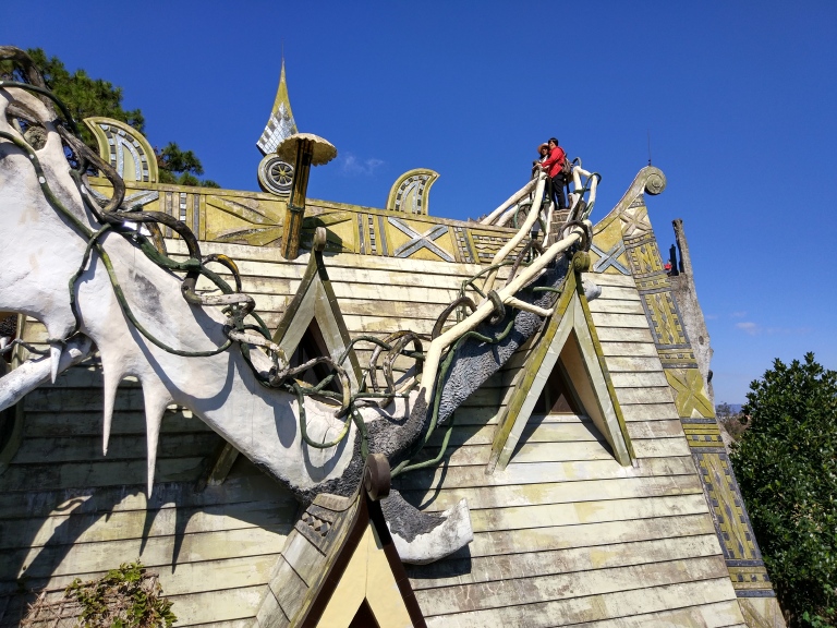 “疯房子”(Crazyhouse), 其实就是大叻的一个旅馆,因为其设计非常怪异而闻名,成为大叻著名的旅游景点。这是一个奇特的地方,设计师DANG VIETNGA是前越南共和国总统TRUONGCHINH的女儿,是一位美丽又传奇的女子.进去后就能看到其形各异的疯房子了,疯房子。需要超过一个小时的时间观览,因为像迷宫一样也不知道这里出现是什么,惊喜的房间在那里又出现,又是哪一个房间,可能是一栋别墅,这里有可能进入一个树洞,这里可能进入个服装店,反正一切皆有可能,一会儿,你可能跑到屋顶一会儿跑到地下一会儿跑着到处冒着温馨的一个小房子里,一会儿可能跑到还未装修完毕的房子,。走在树上的时候感觉颤颤巍巍的都要掉下来的感觉,这条道呢,一般只容一个人过,另一个人要过得要侧身让位。。里面外国人特别多,推荐可以去房顶走一下,虽然看起来比较高,还有一定危险性,不过在上面拍照片确实很好看,屋顶上的照片金灿灿的还能看到几栋别墅,里边具体的建筑大概有三栋,还有一些未完工的,到处都有惊喜。