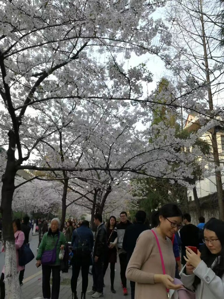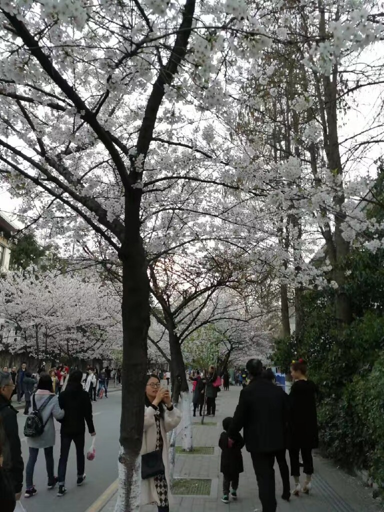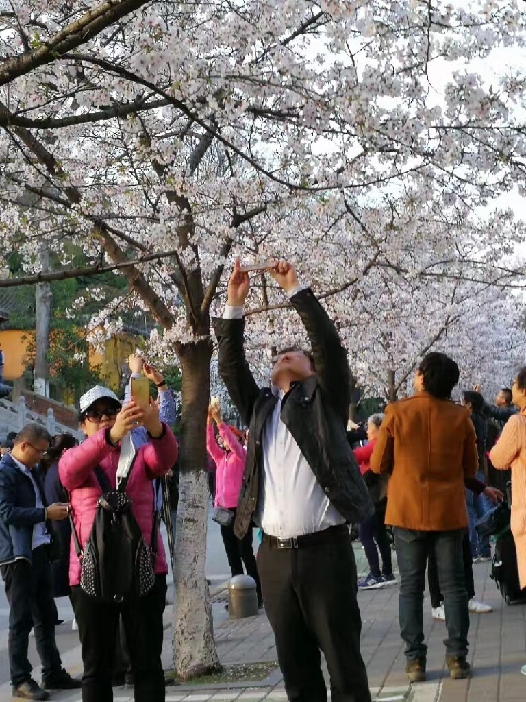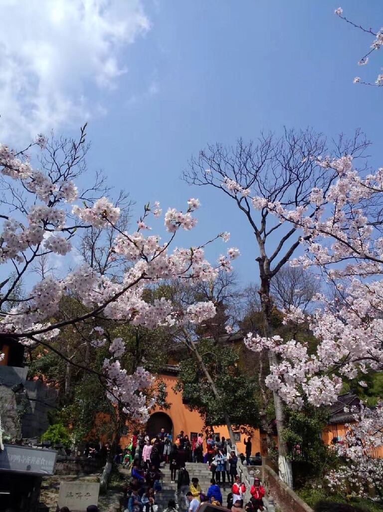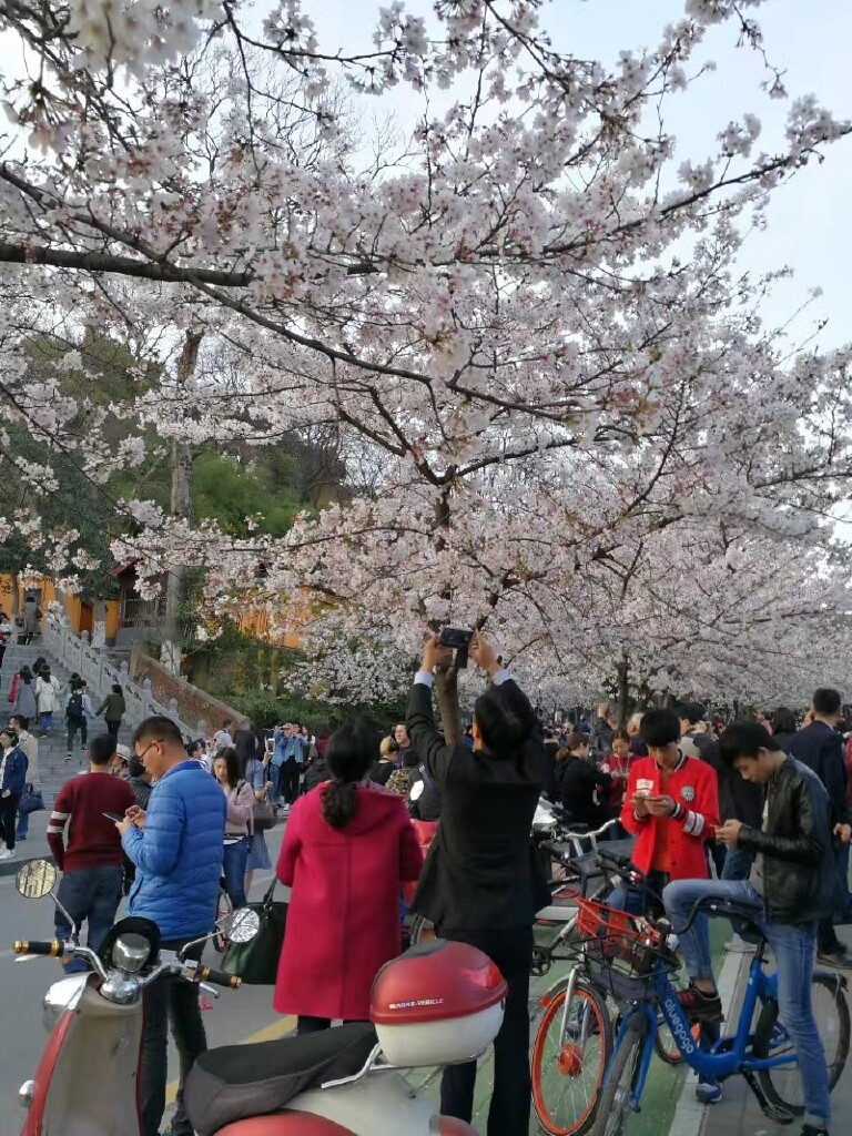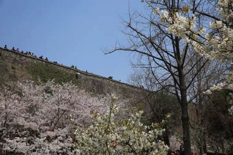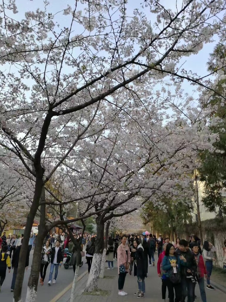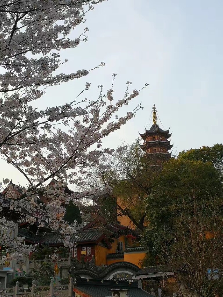 鸡鸣寺的樱花不仅闻名南京,在全国也较有名气,每年去鸡鸣寺赏樱花也成了踏青赏花不可少的课题,可谓百去不厌。一般来说三月底,此时梅花还没全部凋谢又让你进入粉嫩柔美樱花圣地。你可以乘坐地铁三号线也可以乘公交11、24、31等在鸡鸣寺下很方便,刚出站公交大道二旁的樱花也足以让你留足,你可向鸡鸣寺方向前行,不一会你就看到盛开的樱花树随着微微蜿蜒坡道而上形成了一条樱花大道,在你眼前充满似雪、似霞的樱花,十分壮观,此时这里成了粉红色的世界,成了欢呼的海洋。沿着蜿蜒坡道一种视觉感让你充满神奇的前行,不一会你就可以看到南京最古老的梵刹之一,有着“南朝四百八十寺”之首寺美誉的古鸡鸣寺,金碧辉煌的古寺与樱花交相辉映,更加增加了人气,一路到行,当你登上明城墙吹着玄武湖飘来的轻柔的湖风,再回眸刚刚过来的樱花大道,更是另一番景色,居高临下,那一树树盛开的樱花己形成一条蜿蜒的小溪流向远方随风在轻轻的荡漾是那样的抚媚,在阳光的照耀下又是那样的绚烂淡雅,乱花渐欲迷人眼,此时你足以满足……当然你如果要高峰时拍摄难度较大,你可选择六点左右前去人较少此时你会收获多多。