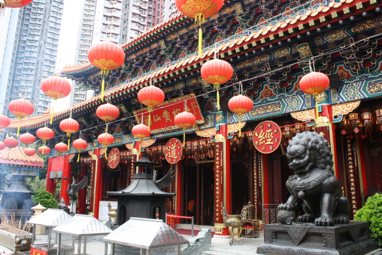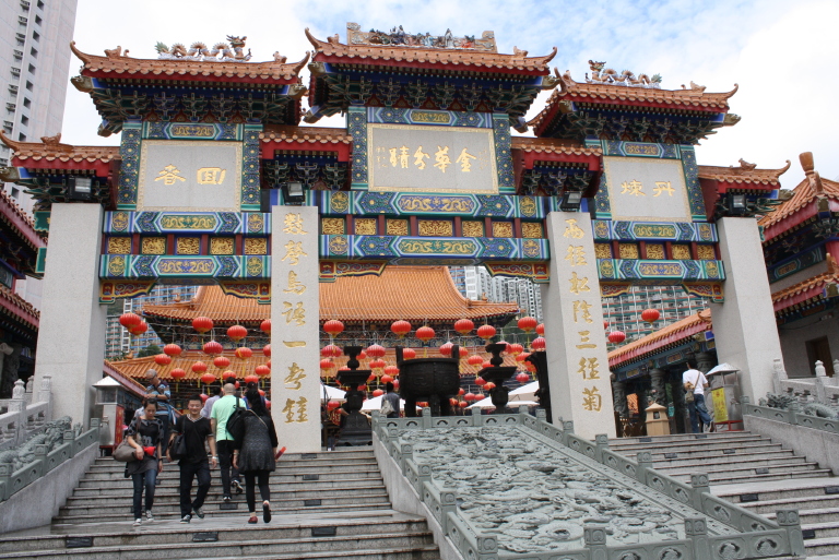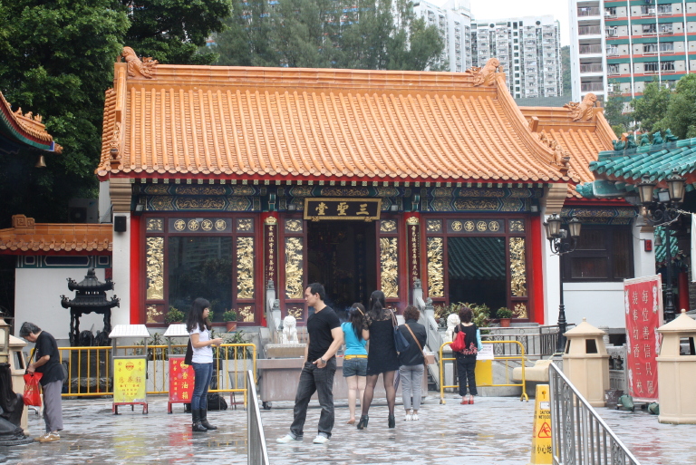 所谓的港进港出千万不要混淆了,香港签证有两次的,才可以香港进到澳门住两天,再到香港住两天,这样的行程是要有两次的进香港过关行为,所以必须有两次的香港签证才可以做到。一般来讲的港进港出是指从香港进关,在香港住几天,再到澳门住几天,最后回到香港机场乘飞机回家这样的行程。走这样的行程港澳签证各有一次就可以了,因为在香港机场就不用再验关了,直接上飞机就可以了。如果想出机场,那就必须重新过海关办理进香港的过关手续。这样的行程从香港到澳门可以在香港的任意码头乘船到澳门,但是从澳门回香港时必须乘到香港机场的船,否则没有香港的二次签证,即使到了香港的其他码头也进不了关。所以在办港澳通行证时尽可能地办理香港两次,澳门一次的签证。(香港黄大仙庙)