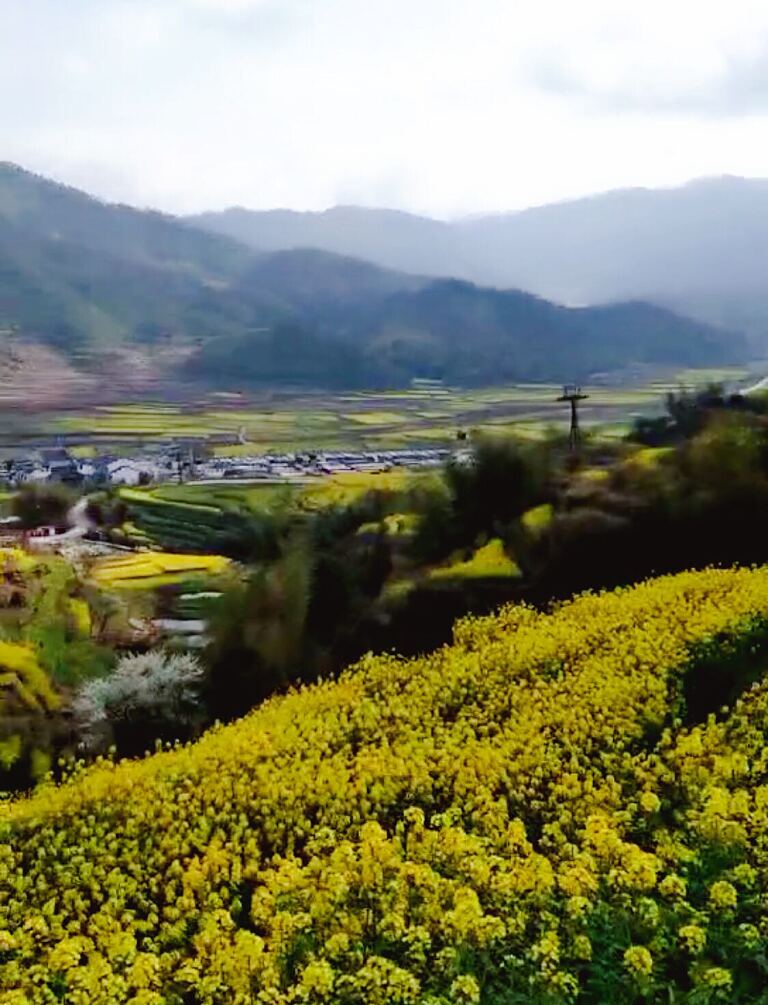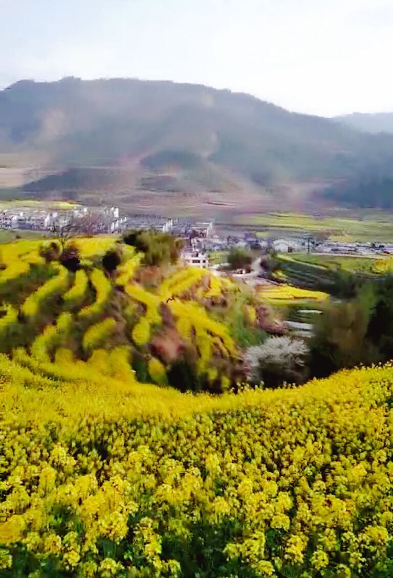 篁岭的油菜花是依山坡而建的油菜花梯田,站在高处,视野豁然开阔,层层叠叠的油菜花梯田依次铺开,金黄灿烂的油菜花在明媚的春光下,美得无法言喻。