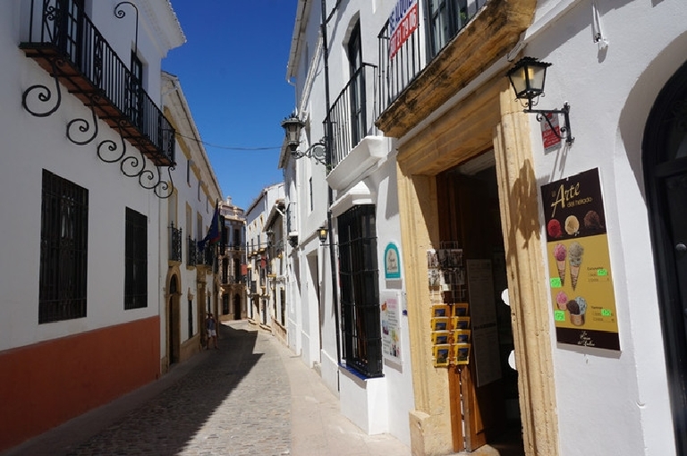 走进龙达老城区,狭窄的街道,白色的墙面,两边有很多可爱的小店......