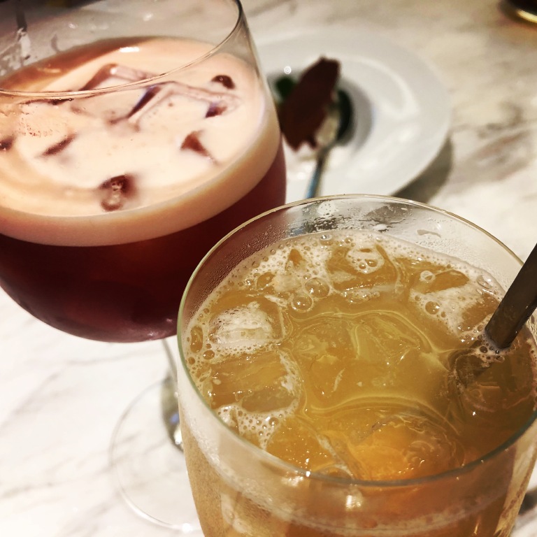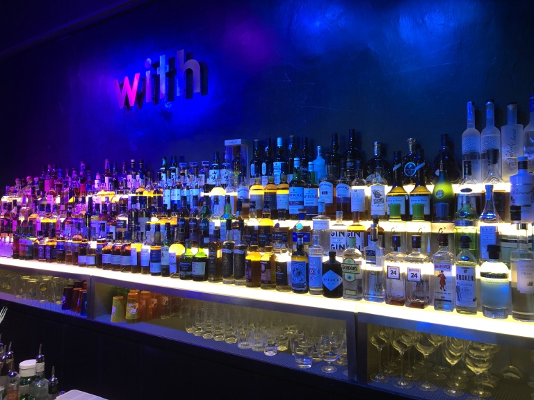 乍一看以为这是家酒吧吗?夜店吗?都不是。白天这里是一家安静的下午茶好去处,提供甜品、饮料、brunch等。晚上变身一家灯红酒绿的餐吧,喝酒、西餐。with 未食位于茂名北路,吧台陈列着琳琅满目的酒瓶,有个调酒小哥。到晚上就变成色彩斑斓的小酒吧。菜单上写着“不喝酒,来人间干嘛”让我一个酒精过敏的人都按耐不住想要来两杯。注意这家餐吧白天和晚上供应的菜单不同,周末白天的只提供brunch和甜品。晚上的菜单则丰富很多,海陆空齐聚。甜品颜值高,味道好。店名:with|未食