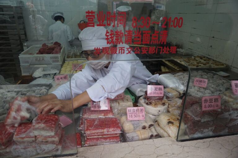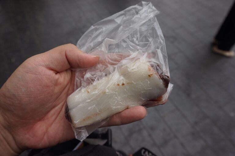 沈大成是一家老字号的餐饮商家,位于上海的南京路步行街,来上海的游客几乎都会去,就在南京路步行街和浙江中路的交界口,每天糕团窗口排队的人都非常多,由于沈大成注重选料,讲究制作精细,发扬传统,立意创新,因而一举成名,沈大成的寿桃、寿糕、桂花条头糕、双酿团,青团等品种享有盛名,还有蟹粉小笼、馄饨、各式二面黄及宴席点心,均各个独特,口碑甚佳,因而早在上世纪三十年代就享誉海内外。他们家的条头糕我还是很喜欢吃的,里面是豆沙馅的,2.5元一个。