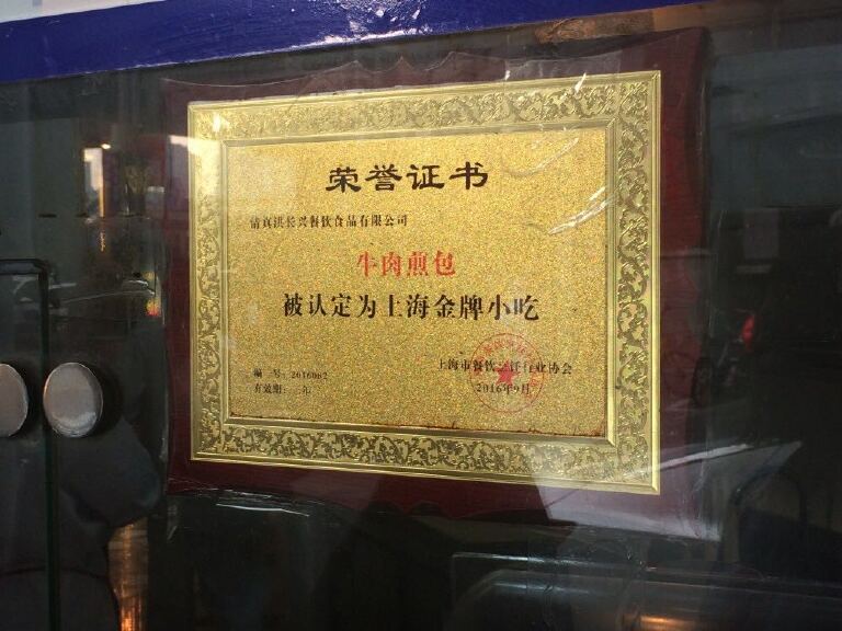 洪长兴是上海老字号的清真饭馆,在云南南路也开了好多年了,生意一直很好。说到最赞的还要属他们家的牛肉煎包了,其他地方吃不太到,因为属于清真小吃,那肯定是洪长兴做的最正宗好吃了。这家店可以吃点菜或者火锅,牛肉煎包一楼有外卖的窗口,基本都有人排队,一锅一锅的做,基本没停过。金黄色的外皮,师傅把包子翻个面,看着就很垂涎欲滴。3.5元一个,价格也不贵,这里的牛肉煎包皮做的挺薄的,第一口咬下去就可以看到牛肉了,虽然牛肉不多,不过清真的牛肉品质很好,里面是咖喱味,挺好吃入味的。来这里买的食客很多8个10个一买,老字号很多吃了十多年了。