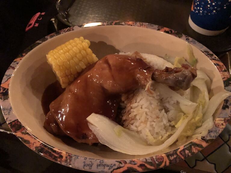 迪士尼乐园内有好几个餐厅,例如迪士尼城堡内有一个餐厅,叫做“皇家宴会厅”,和其他餐厅比起来,皇家宴会厅的招待人员要多很多,主要提供西式的美食,不过皇家宴会厅也是迪士尼各个餐厅中,人均消费最贵的,大概300-500之间。普通游客基本都是在其他餐厅就餐,人均消费在70-80之间,网传迪士尼餐厅内的餐品非常贵,人均70-80,在外面就餐也要吃到这个价格了。我比较推荐的是宝藏湾内的巴波萨烧烤,里面有多个品种,4个套餐和1个儿童餐可以选择,味道不能说特别好吃,但是管饱,比较特别的是,餐厅内有一条河流,是可以看到“加勒比海盗”的游客的。除了餐厅,迪士尼还有流动的推车(出售饮料)、固定的小吃店,出售像鸡腿,冷饮之类的食品。
