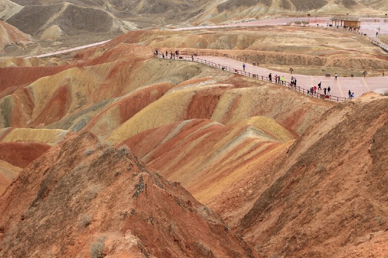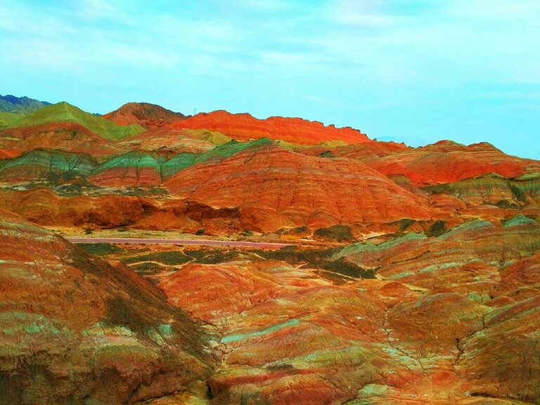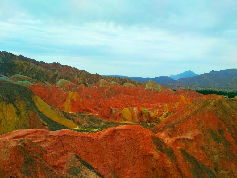 七彩丹霞是去看七色土的,全球可以看七色土的,据我所知就是七彩丹霞和毛里求斯的七色土了。很值得去,卓尔山是去看山景的。
