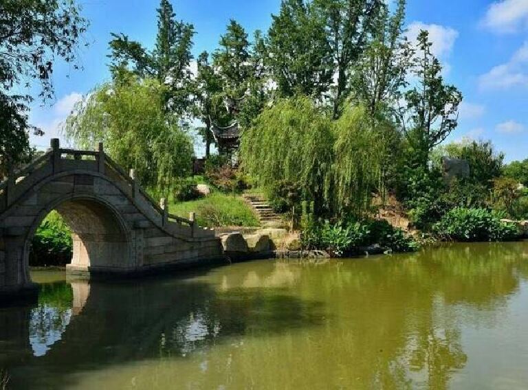 园内桥连着水,水依着树,树伴着花,花陪着人,到处是一幅祥和宁静的时光风景画!
