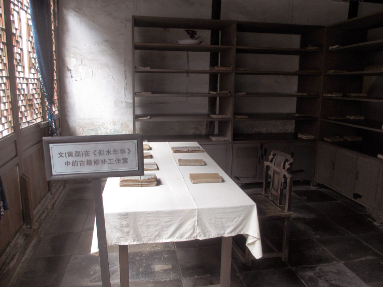 乌镇水乡很美,有东栅和西栅两大块。黄磊饰文在电视剧《似水年华》里的修补古书籍工作室是在东栅。