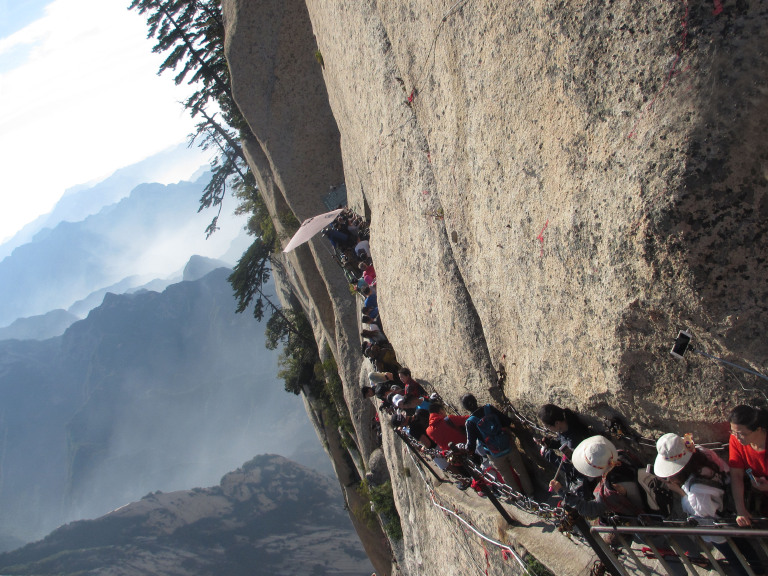 华山奇、险、俊、美,我是一路小心翼翼地攀爬上去的,当爬到华山极顶——南峰时,体力已达极限,可想当年解放军智取华山有多难了。