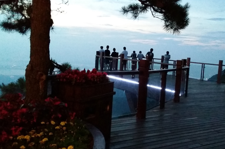 缆车到达终点:海拔2970米的雪朗峰观景台。