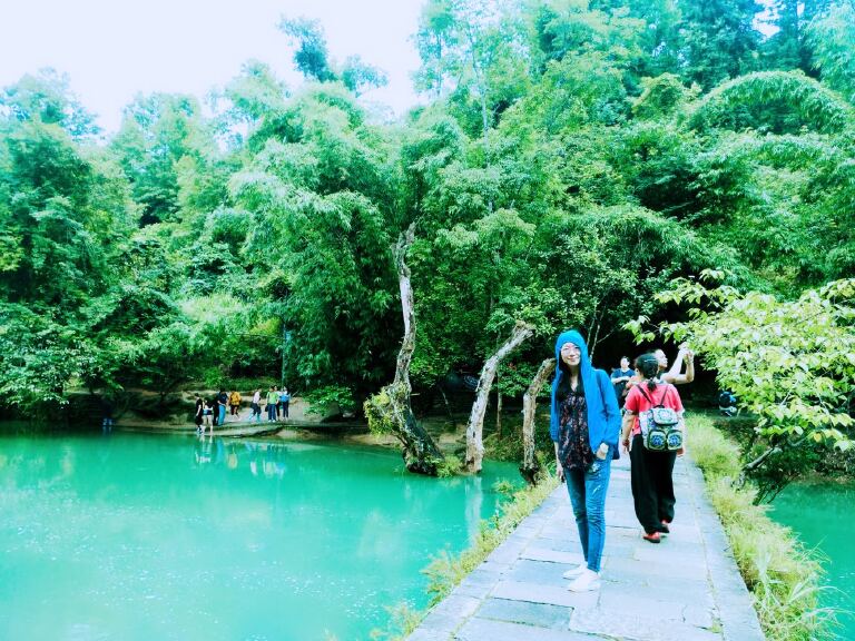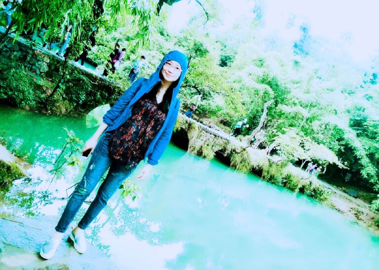 今天六月份去小七孔景区时,原本雨已经停了,到达水上森林时突然又下大雨,水上森林的水很急石头很滑,我踩上去没站稳脚跟,一个跄踉摔倒了,头撞上石头,额头破了个口子,留下了疤痕无法修复。
