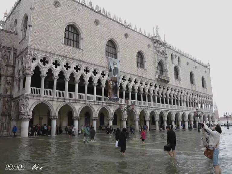 2、天气因素。同样是那次游览威尼斯,因前一天大雨,我们见到的威尼斯城内许多街道因海水涨潮被淹,好几个景点因要涉水不能去了,特别期待的贡多拉船停开,实在是无奈!