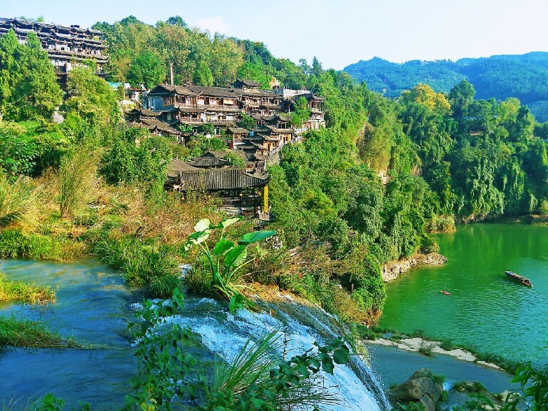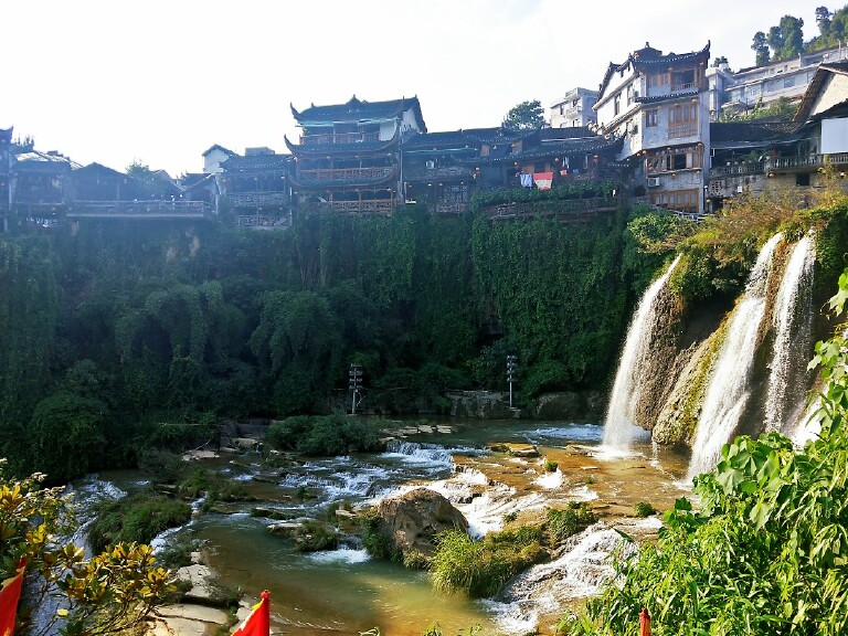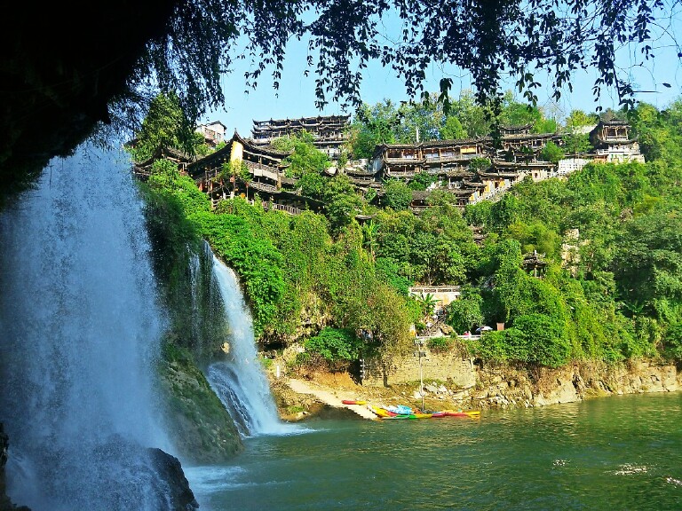 一个挂在瀑布上的千年古镇,比凤凰古城美。