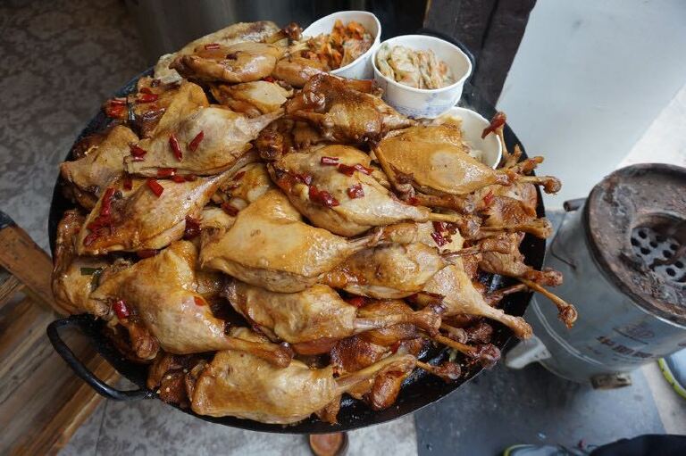 我去黄山和宏村的时候,有这么些美食是我记忆比较深刻的:毛豆腐、汤口镇的土鸡汤、宏村的大鸡腿和《舌尖上的中国》里面出现的刀板香。毛豆腐是徽菜中的代表,毛豆腐曾经上过《舌尖上的中国》的,闻上去的味道和臭豆腐不分伯仲,都是发酵出来的美食,但是口感和臭豆腐截然不同,毛豆腐的口感和我们平时吃的腐乳口感很像,要再结实一点。汤口镇的土鸡汤是我喝过的最好喝的鸡汤,鸡汤里放了些小香菇来增加鸡汤的香气,的确非常美味,据说老板炖了5,6个小时,鸡肉不能说是入口即化,但是不用怎么嚼,舌头碰碰就烂了。宏村的鸡腿是网友力推的,和普通的红烧鸡腿不一样,宏村的鸡腿里放了徽菜中惯用的辣椒,而所用的辣椒,也是当地人自己采集制作的,带了一点微辣口味的鸡腿,吃起来挺开胃的。最后说的就是刀板香,我们去的一家叫做徽州味道,厉害的是,老板就是上过舌尖上的中国中,制作徽菜的那位师傅,刀板香就是将徽式咸猪肉先蒸熟,然后切片,口感肥而不腻,的确好吃。