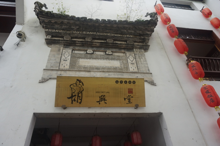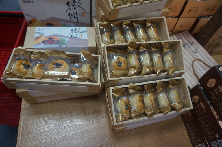 宏村的特产可以在村口大树旁边的胡兴堂买。胡兴堂有各式各样的当地特产,胡兴堂是宏村内最大的一家出售特产的店铺,里面主推的是黄山烧饼和徽饼,黄山烧饼是现做的,还是热腾腾的,里面是梅干菜,很香。徽饼也是现做的,味道是甜味的,买点回去送人还是挺体面的。