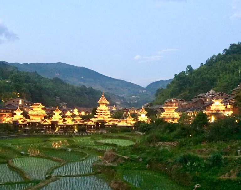 当你来到位于贵州省黔东南苗族侗族自治州的雷公山麓,被称为世界最大的苗寨—西江千户苗寨,在感受到了它的美丽同也感受了它的商业气息。依山而建十多个自然村寨连接成一片,当夜幕降临千盏灯火齐亮,灯火通明,将整个村寨被勾勒的如诗如画。