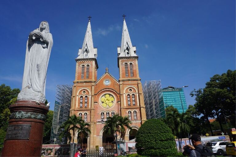 红教堂是西贡最著名的地标建筑,教堂原名为西贡王公圣母教堂,因其使用红砖建造故而得名,建造所用红砖全部从法国运来,百余年过去,色泽依然鲜明,毫无褪色。 站在这座红教堂前留影的人特别的多,相信你也一定会在此留影纪念的吧!