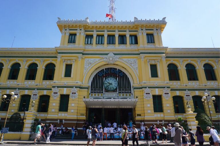 用红砖建造而被称为的"红教堂"是典型的哥特式建筑,也是胡志明市的地标性景观。还有建于19世纪末的中央邮局,至今仍在使用,大厅内部装饰华丽,圆顶设计极富古典风格的气息,看来,从这里寄出的明信片的意义可谓非同一般哦。
