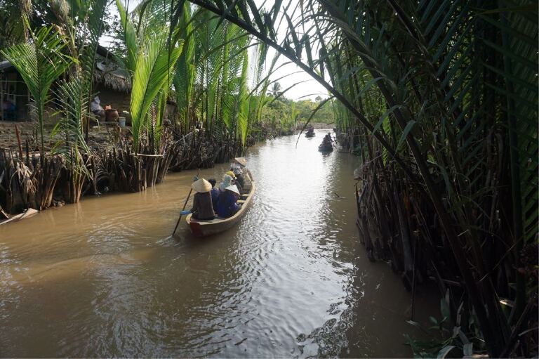 最后,畅游湄公河,是不能忽略的,坐在估计是红木的小船上,阵阵凉风吹来,穿梭于丛林大树中,聆听潺潺流水的声音,真的惬意无限。