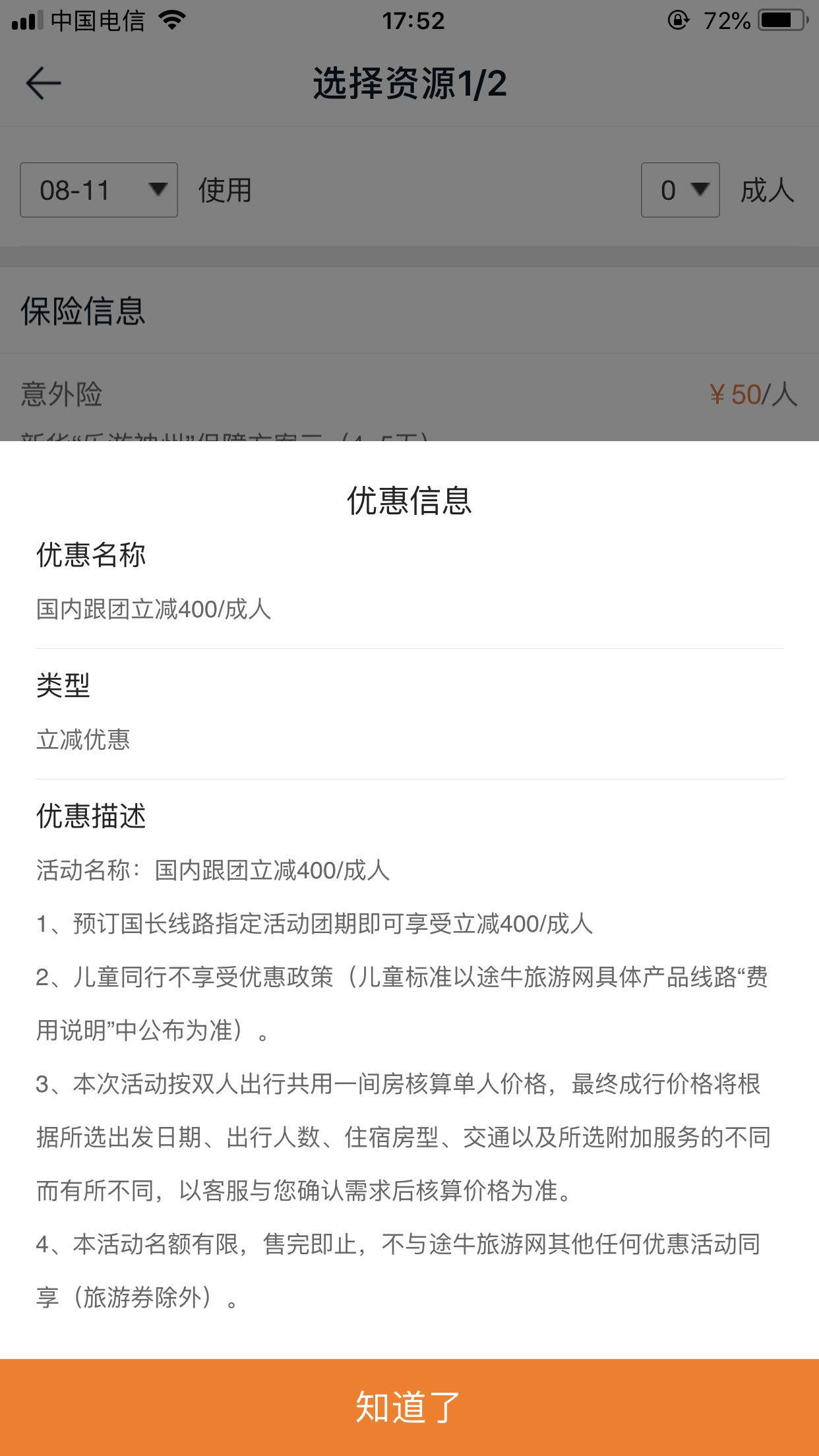 您好,我想问打架这个预定国长路线指定路线立减400元每人啥意思?
