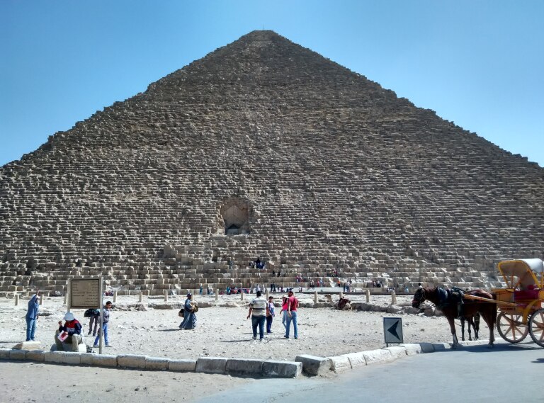 胡夫金字塔是可以进的,但只允许从大走廊进入到国王墓室为止。据进去过的人说,门票100埃磅,里面黑乎乎的除了四壁的石头啥也没有,还要爬一身的汗。我去的时候看见不少人在排队,但朋友告诉过我进去没什么意思,还怕招来厄运,还听说有细菌喝放射线,反正我不会进去。
