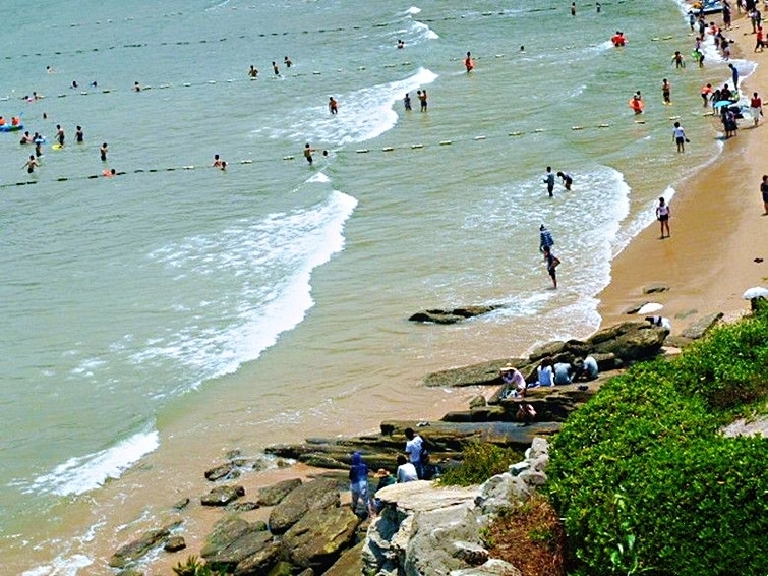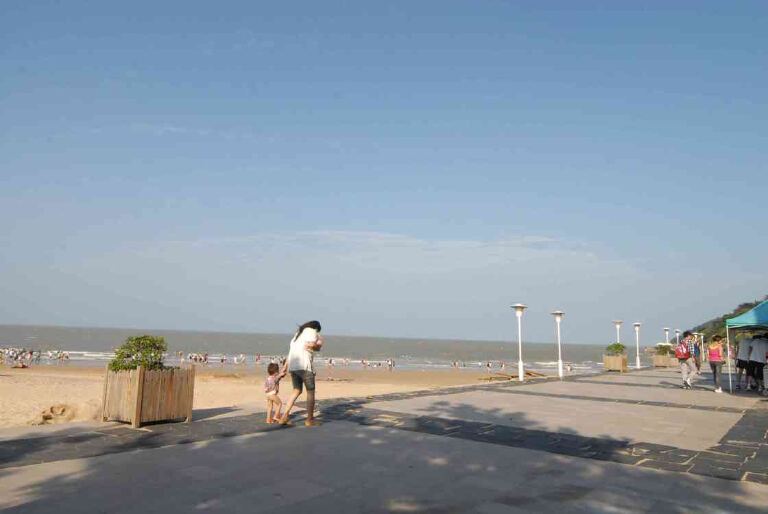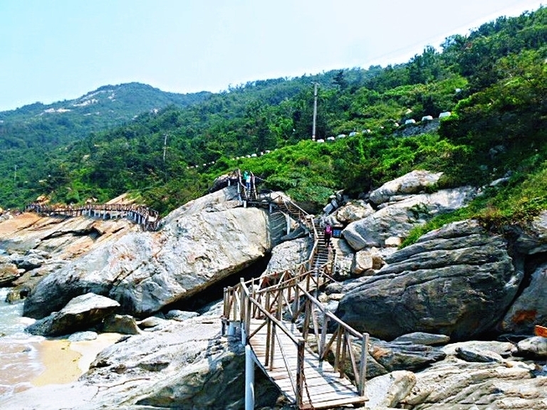连島上就好玩的就是大沙湾和苏马湾的海滨浴场了,还有那连结两个浴场间的卧龙栈道。
