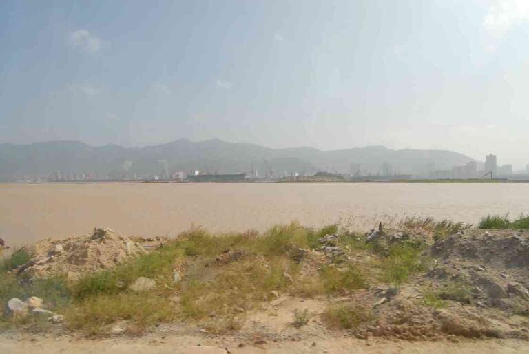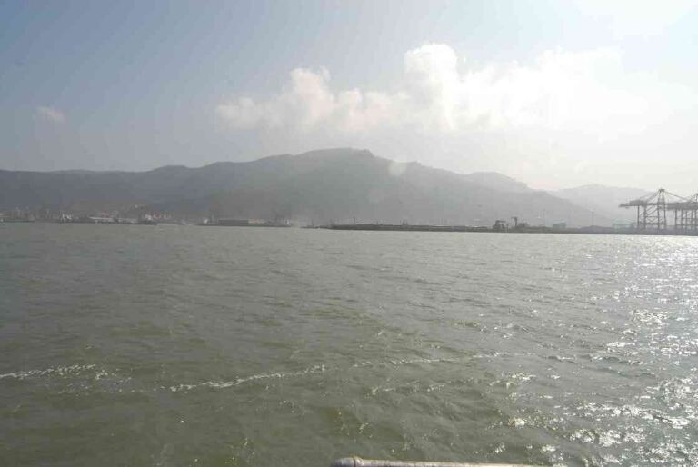 出海地点是在连岛的码头,游客乘坐的是观光船,一艘船大概最多容纳100人吧。出海的线路是从码头出发到连云港的出海口,大概来回行驶时间30分钟。连岛的码头,对面就是连云港港口,如果有货物装船或者卸货,还能看到集装箱上上下下。连云港属于黄海海域,因此江水的颜色并不清澈。