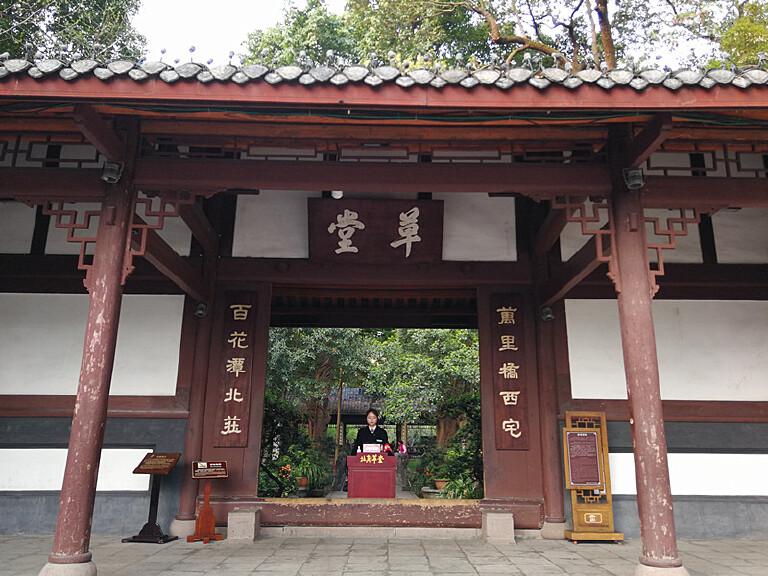 杜甫草堂是中国唐代大诗人杜甫流寓成都时的故居,杜甫先后在此居住近四年。是中国规模最大、保存最完好、知名度最高且最具特色的杜甫行踪遗迹地。照壁、诗史堂、柴门、工部祠、少陵草堂、万福楼等是草堂的经典景观,现在的杜甫草堂内流水萦回,小桥勾连,竹树掩映,显得既庄严肃穆、古朴典雅而又幽深静谧、秀丽清朗,因此也成为来成都旅游的必去景点。