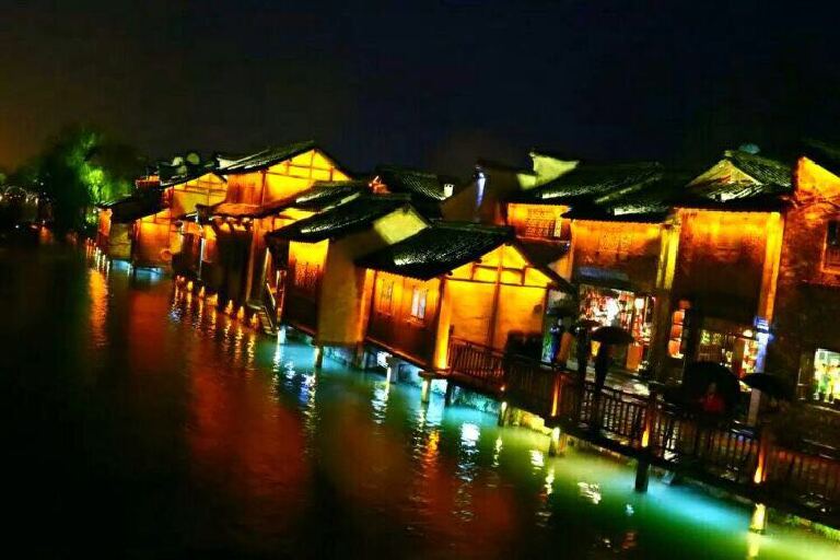 夜宿乌镇的西栅,远远望去,整个水乡既恬静淡泊,温婉雅致,又五光十色,婀娜多姿,恰如一幅魅力无限的流动画卷……