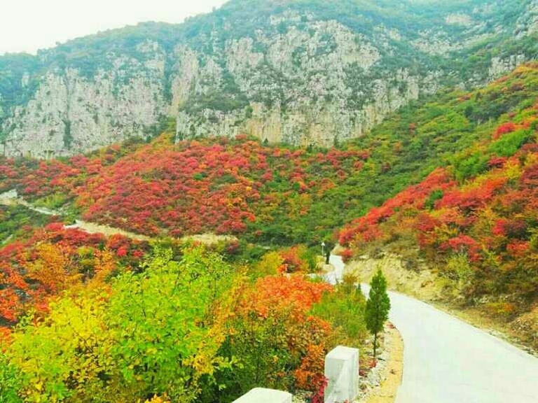 十月底正是北方地区的深秋季节,正是赏红叶的时候,推荐来太行山游玩,这里秋景非常漂亮而且也不花多少钱。太行山的夏天碧绿碧绿的,到处郁郁葱葱,一到秋天,太行山就变成人色彩斑斓、五彩缤纷的世界。我去年去了太行黄花山,黄花山位于太行山东麓,是离林州城最近的风景区了,从安阳驱车也就1.30分钟。黄花山并不高,2.30分钟就可游完,所以星期天来个休闲游还是很惬意的。走进山里,首先感到空气清新,虽然去的时候天气阴天,但足以使人心旷神怡,登上山顶,举目四望,一片绚烂,五颜六色,多姿多彩,甚是美观。太行山风景区非常多,红旗渠、太行大峡谷、通天峡、王相岩、桃花谷等等,景色都非常美。