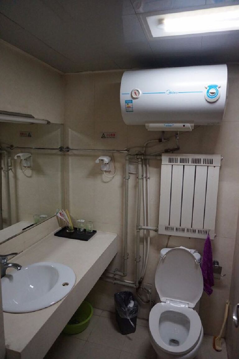 推荐你一个酒店吧,叫做汉唐假日公寓酒店,位于西安的钟楼附近,入口处是“速8快捷”的入口,因为这个公寓内有很多家酒店,停车可以停在酒店的后方,网上信息是在12楼,但是12楼是他们的办公室,在12楼登记好后,会提供你的房号以及密码。由于是淡季,我们原本订的是大床房,老板给我们免费升级成为家庭房。家庭房空间很大,摆放了2张床,一张4尺的床和一张6尺的床。房间内有暖气、电视机、WIFI,该有的设备都有,墙面上的贴纸让住客感觉到很舒适。房门入口处摆放着椅子和镜子,空间很大,可以把行李放在这里。热水器是电加热的,在进入房间后就需要把电源插上,卫生间内的一次性梳洗物品齐全。