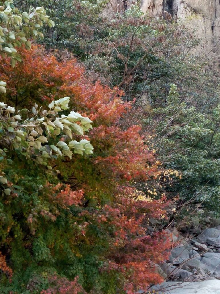 然而,我喜欢片片摇曳的枫叶,上海公园里的枫叶,把整个秋天的激情层层点燃,也慢慢染红了上海的秋色。枫叶! 向人们热烈地述说着秋的美丽,秋的灿烂,秋的金贵,秋的胸怀,秋的丰采,秋的执着。漫步公园,道路两旁的,小径蜿蜒处的枫叶,可谓绚丽非凡:鲜艳大红的,浪漫无比,粉红嘟嘟的,娇羞可爱,叶儿暗红的,沉稳大气,微黄偏红的,略显稚嫩,还有绿中带黄的,显然尚未成熟,这一幕幕的景色,实在是美不胜收啊……