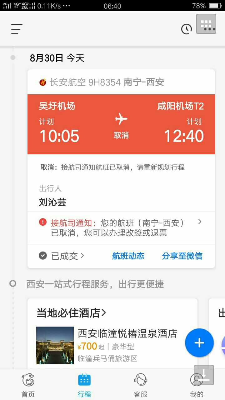 这就说明通知你这个航班已经取消,然后让你重新的定。