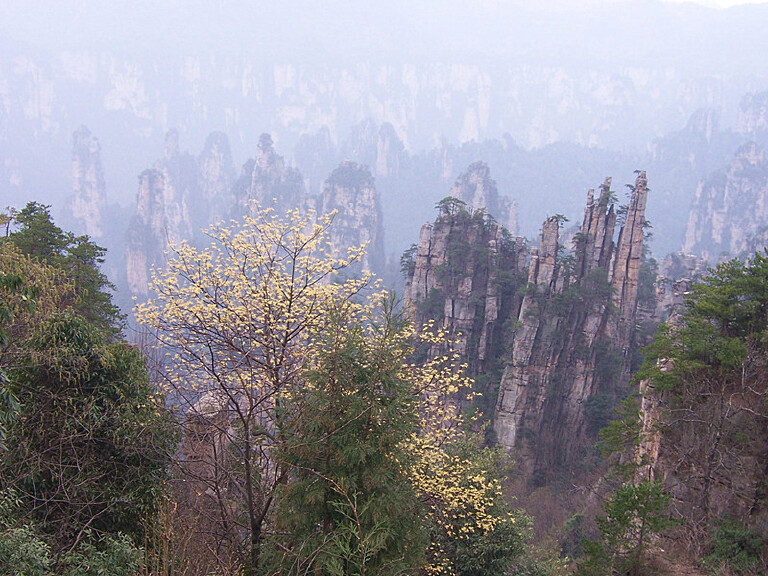 我年轻时爬过黄山、峨眉山、青城山,海螺沟,后来海拔两三千的都是坐车坐缆车上去的,近年来真正自己爬上去的就是张家界罗,但海拔只有1000米。张家界森林公园的风景非常美丽雄奇,我们一路走一路欣赏美景,一路拍照留影,所以爬到山顶用了大半天时间。站在袁家界景区的观景台上,三千奇峰尽收眼底,雄险秀野,神态各异。峡谷深处,千百根石峰石柱奇伟突立,电影“阿凡达”的外景就取自于这里。“天下第一桥”是武陵源精华景点,由大自然的鬼斧神工造就,将一块厚约5m的天然石板,横空架在两座山峰之上,把东西两峰连接。高度、跨度和惊险均为天下罕见,故而得名。