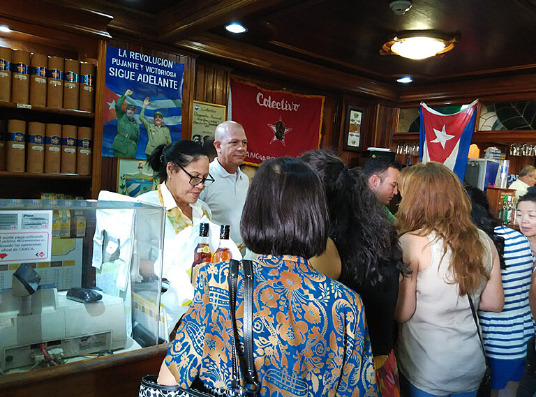 有她带着我们参观,我们走进了哈瓦那的大街小巷,凭粮本供应口粮的粮店、私人和国营并存的菜市场、国营副食品商店、国家允许的私人小作坊、私人饭店,带我们去买雪茄烟、朗姆酒。