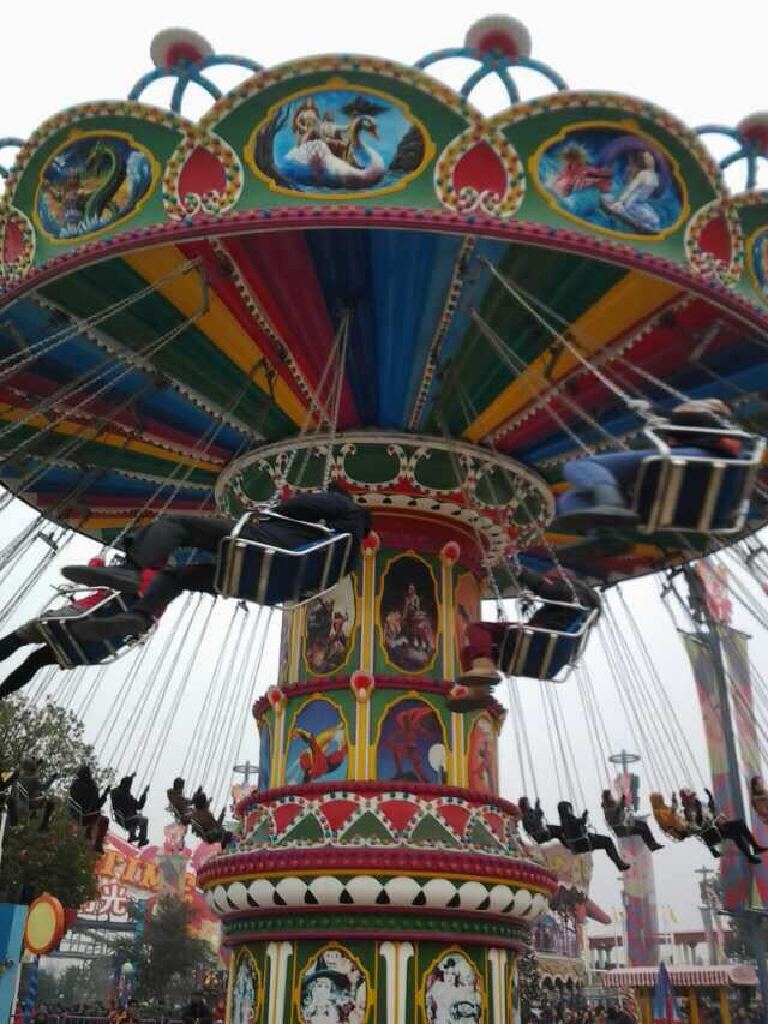 过山车上此起彼伏的尖叫声,吓退了我,上摇摆机试试,还可以,仿佛儿时乘坐木马机器的感觉,最惊心动魄的“谷木游龙”,让我尝到了什么是胆战心惊,什么是要钱也要命的节奏,在游戏机快速冲上轨道,又立刻下滑的瞬间,我的心里默默祈祷,赶紧结束吧,小心脏实在承受不了了,如此循环折腾了好几次,游龙终于停止了,我慢慢睁开眼睛,暗暗庆幸自己仍然活着,并发誓,以后再也不会玩此类游戏了。