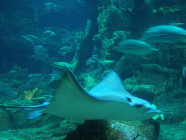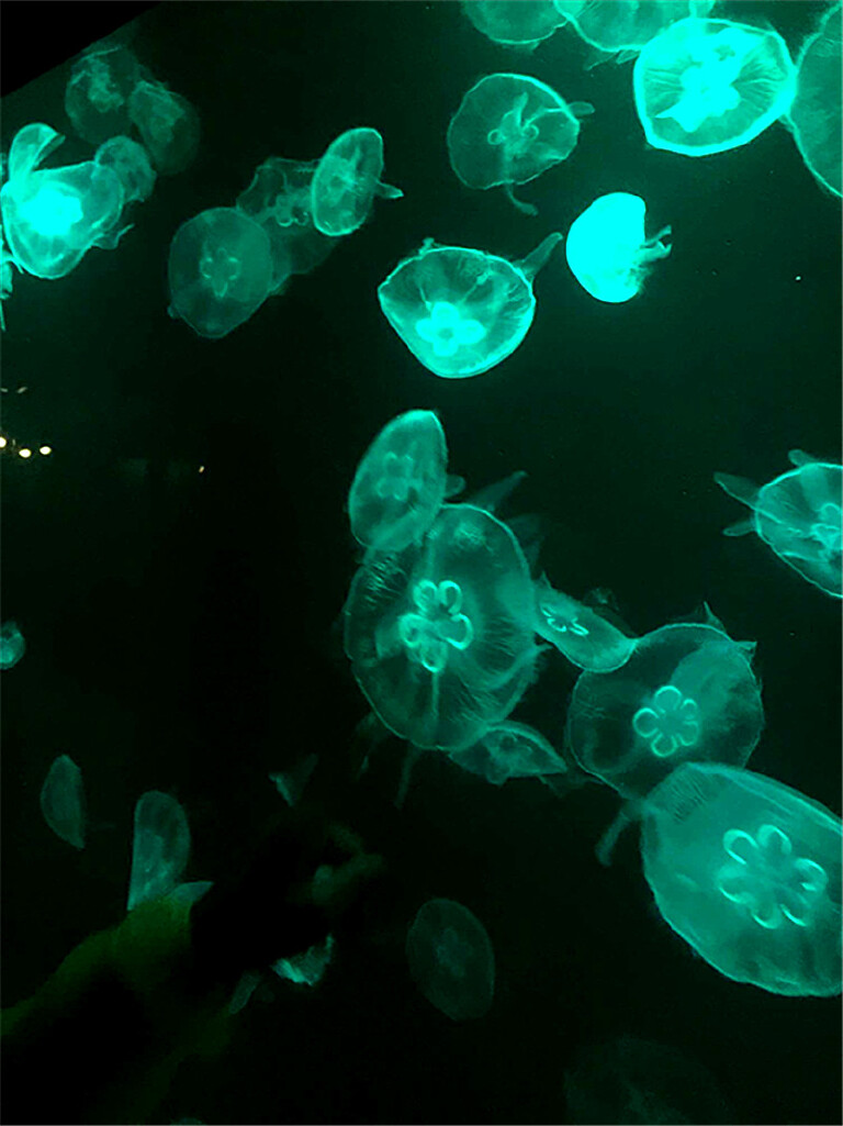 海洋馆是世界最大的水族馆之一。馆内放养了太平洋岛屿及南中国海鱼类5000多条,约400多种,从体长不到2厘米的盐雀鲷到身长3米的豹纹鲨,还有海鳗、神仙鱼、石斑鱼等各种珊瑚礁鱼类。游客可以在分为四层的海洋馆里,透过玻璃从不同角度欣赏各种鱼类的优美姿态。水母馆内展示种类上百种的水母,特色是利用灯光效果展示水母动态,以电脑特技教导大家认识及保护水母。