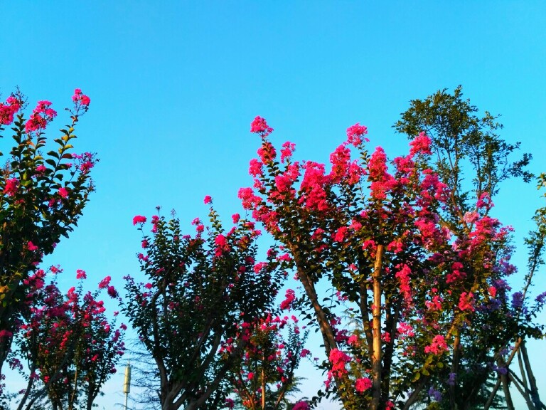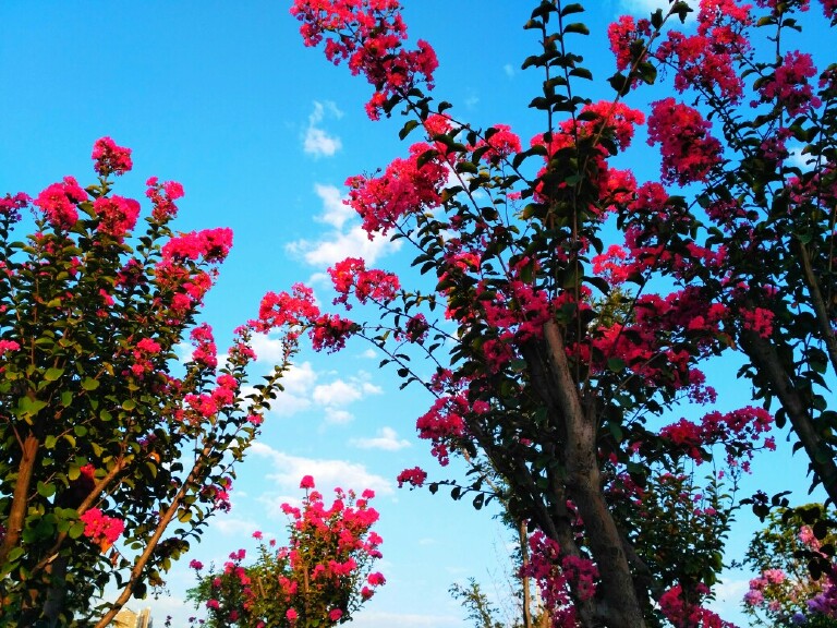我的城市市花不愧为紫薇花,大街小巷种了很多紫薇,我居住的小区傍边有个公园就叫紫薇园,还有个小区叫紫薇壹号。现在正是紫薇花开的季节,满大街紫薇花开,芳香怡人。安阳虽是个小城,感到很幸福