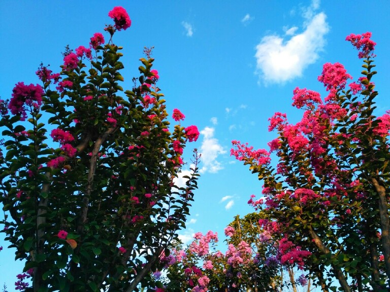 每一种花都会绽放自己的美,各领一方风骚。像紫薇花,花色娇艳,以紫色为主,深紫、浅紫、粉色、白色,而且花期长,从六月份一直开到深秋,树姿优美,枝干屈曲,很有观赏性。古人曾言“谁道花无百日红,紫薇长放半年花”。