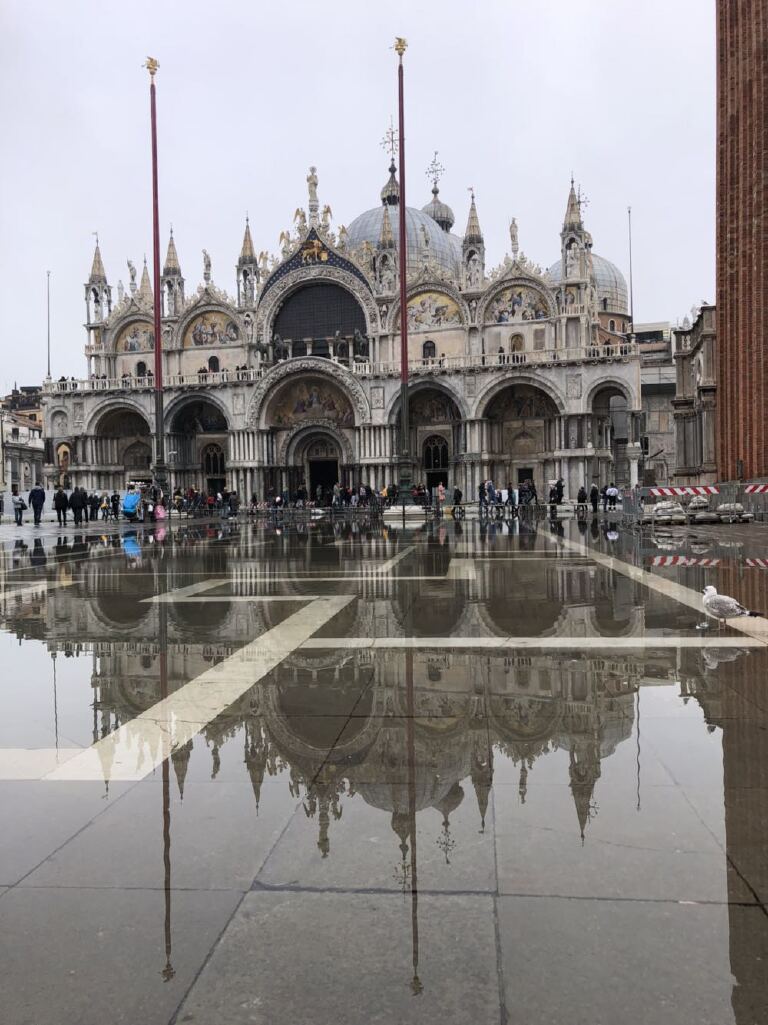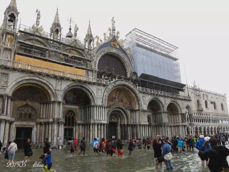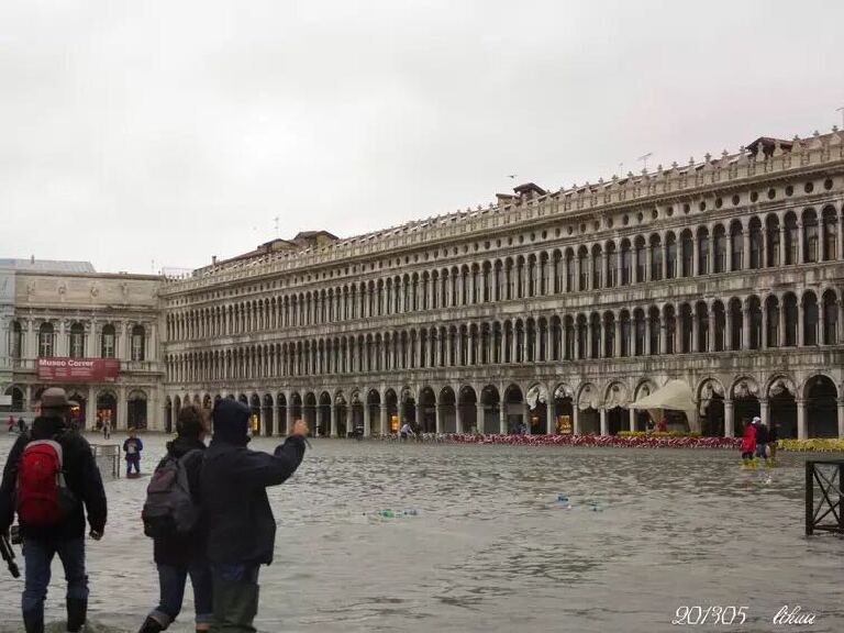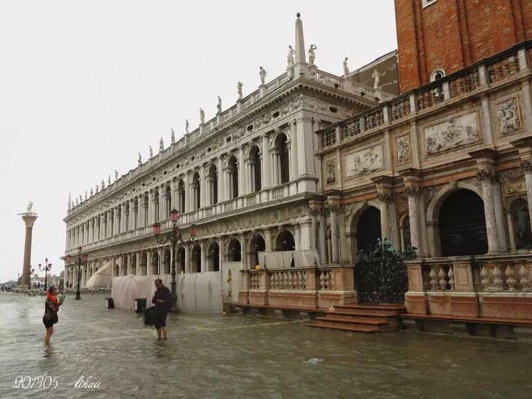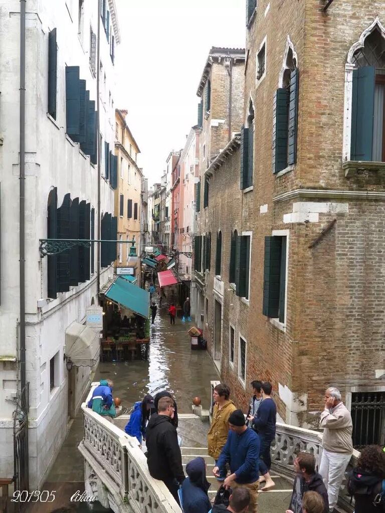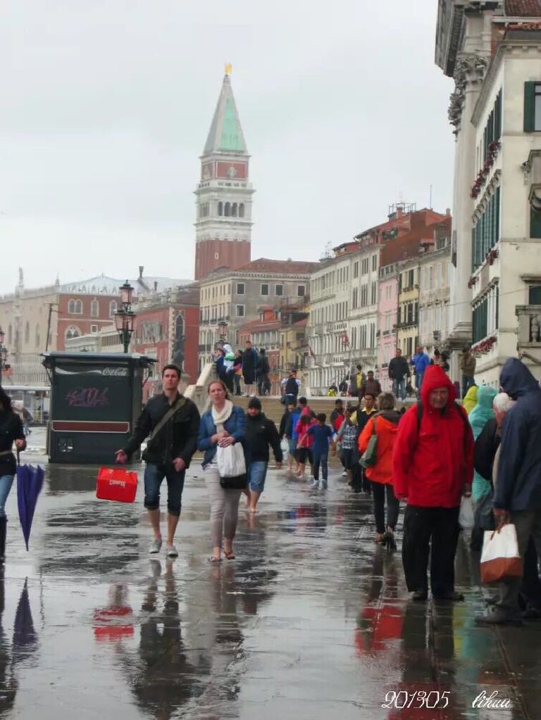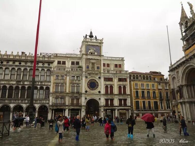 如果在威尼斯的时间不是一整天,就只能安排游览威尼斯主岛。我们那次跟团游是从瑞士坐大巴来到这里,只是游览了主岛。非常不巧,头天下大雨,我们眼前的威尼斯成了真正的“水城”。