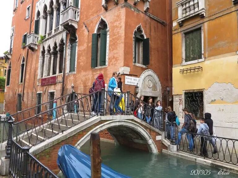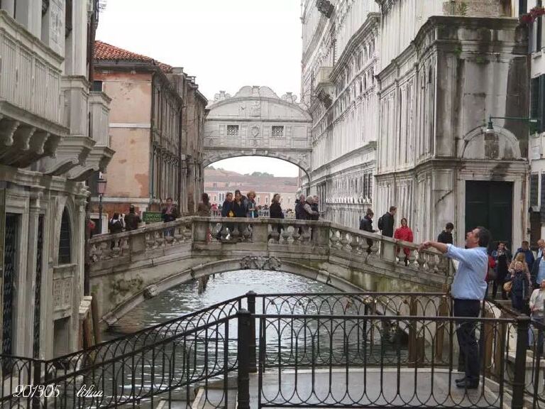 当时我们团兵分两路:小部分人(先生去了)淌水去参观圣马可教堂、广场等,我跟随大部分人原路走小巷返回登摆渡船处。非常不爽!拿破仑称之为的“欧洲最美丽的客厅”、有名的道奇宫、叹息桥我都没见着,只能在此留下叹息,只能看先生拍的照片了。